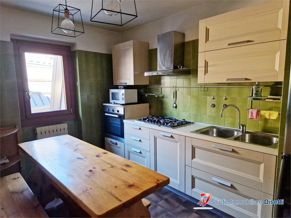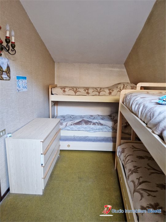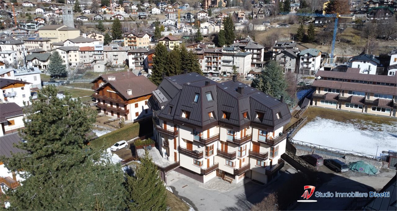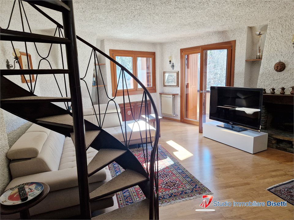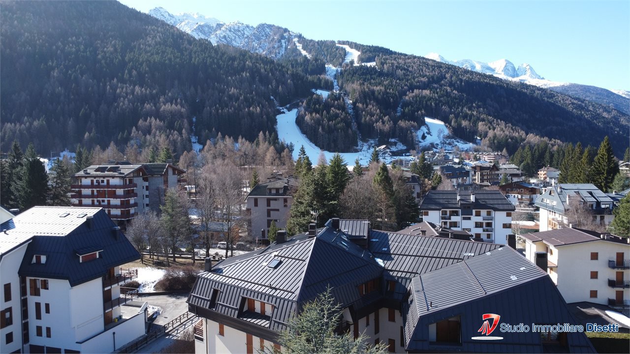 L'appartamento, servito da ascensore, si distingue per gli ambienti luminosi e l'atmosfera accogliente di montagna. L'ingresso conduce a un ampio soggiorno con caminetto, balcone panoramico che regala una splendida vista sulle montagne, cucina abitabile, una camera matrimoniale e bagno,