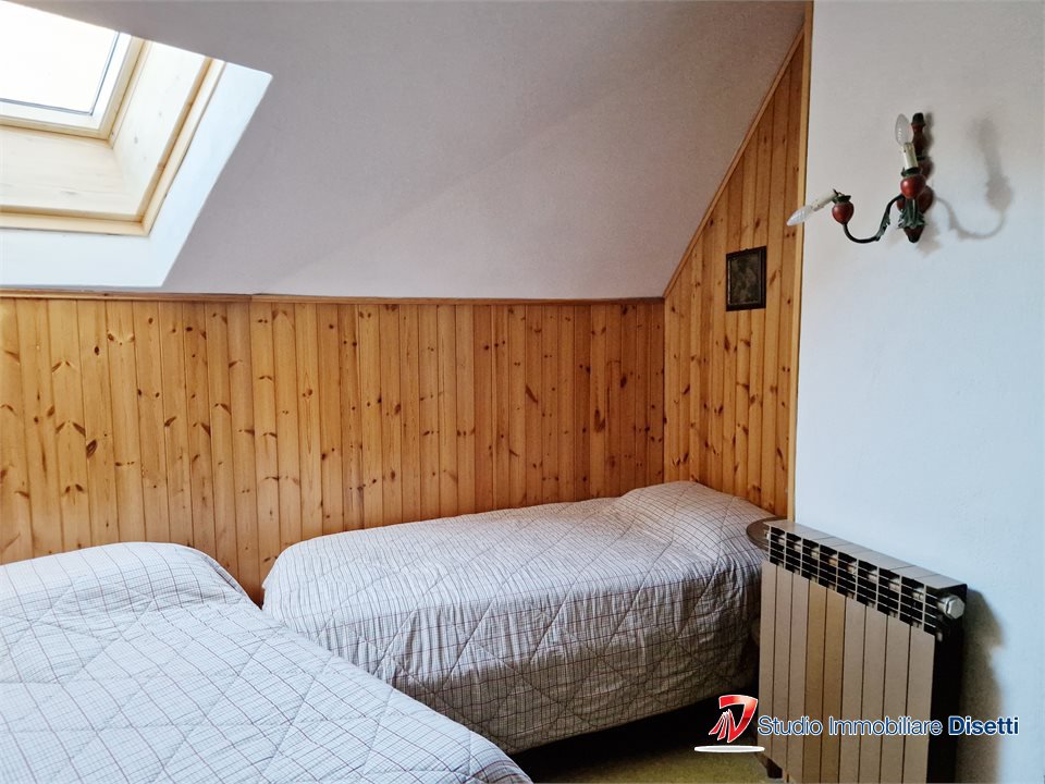 Una suggestiva scala accompagna al piano superiore mansardato, dove troviamo due camere, bagno e ripostiglio.